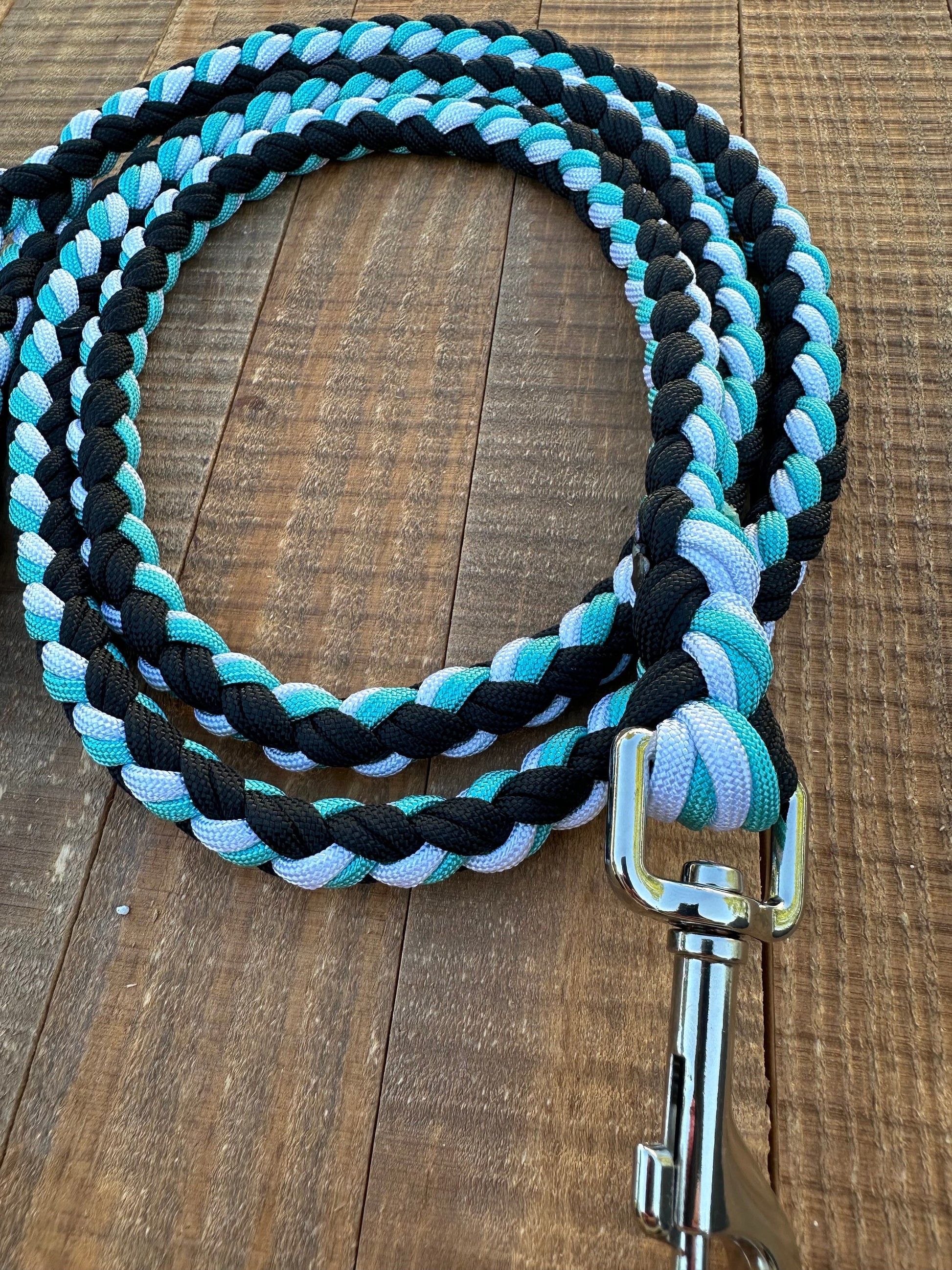 Take your dog to the beach! Take them on a hike! Our leashes can be taken to the outdoors. They are weather resistant, durable, mold/mildew/rot resistant and can be washed and hung up to dry. This leash with black, turquoise and white 550lb Paracord braided together to make the leash strong with a swivel clip. All leashes are 5 foot long. If you would like a shorter or longer length message me and I can make it. If you want different colors message me we love to do custom leashes!